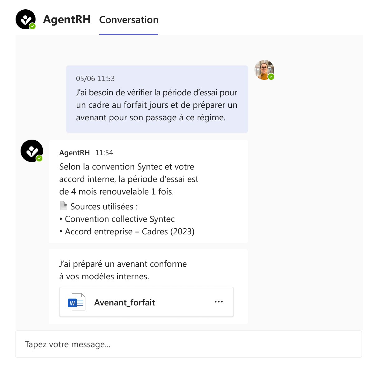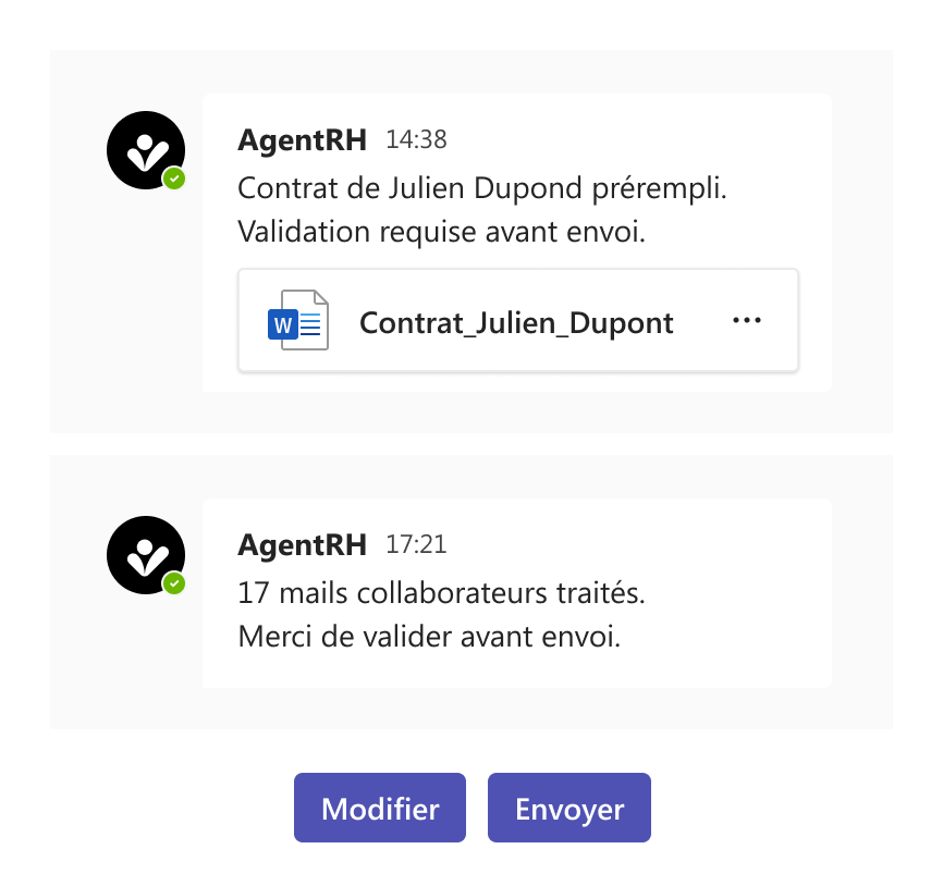 Un SIRH structure et centralise. AgentRH agit comme un assistant intelligent : il comprend vos règles, contextualise les demandes et vous fait gagner un temps précieux.