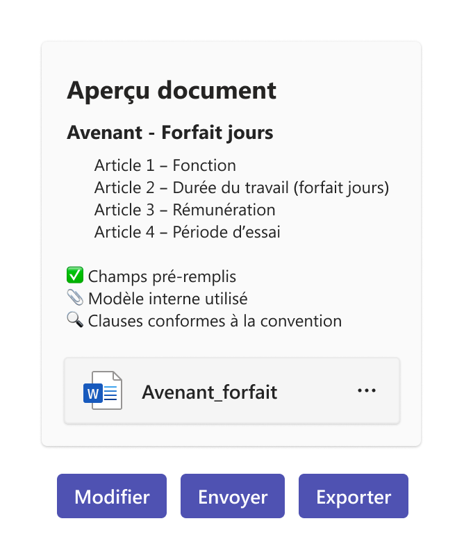 Non. Vous nous fournissez vos documents RH (convention, contrats, mutuelle…), et l’agent RH est automatiquement entraîné. Il apprend ensuite à chaque usage.
